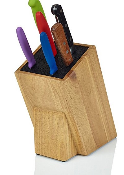 This is such a simple idea I don't know why everyone doesn't use it. Instead of specific sized slots for knives, this allows you to put any size knife anywhere in the block. So if you get a new knife-you have a place for it.